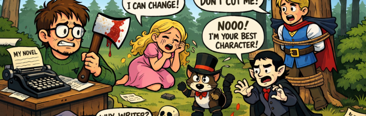 Het is dat ik het zo’n bijzondere zegswijze vind, kill your darlings. Het geeft iets van troost als ik mijn messen slijp. Weet dat ik jullie heel mooi vind, maar toch moeten jullie er aan geloven.